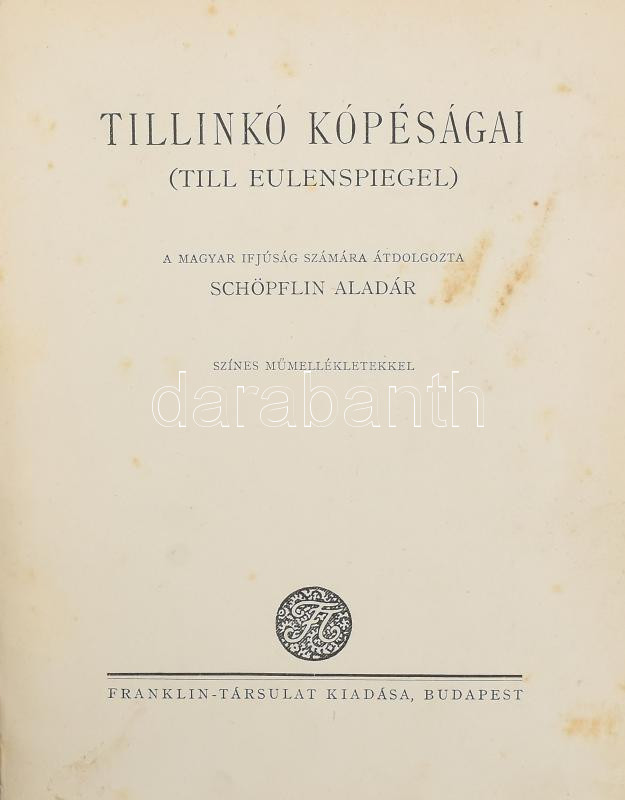 https://www.darabanth.com/en/488-Online-auction/488.0/Books/Books-Other-rarities~1000036/Tillinko-kopesagai-Till-Eulenspigel-Magyar-ifjusag-szamara-atdolgozta-Schopflin-AladC3~II3325573