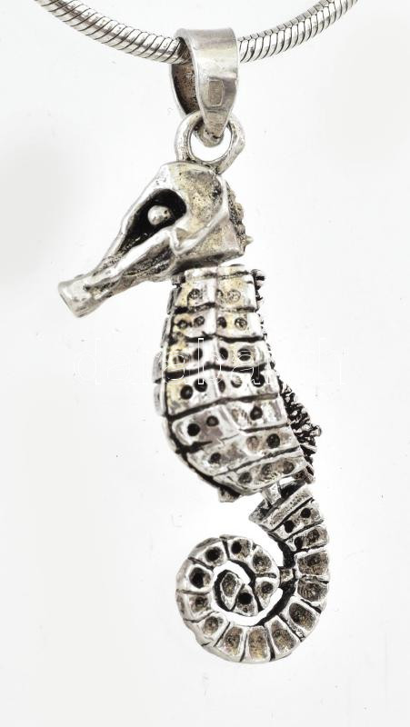 Ezüst(Ag) hengeres kígyó nyaklánc tengeri csikó medállal, jelzett, h: ...