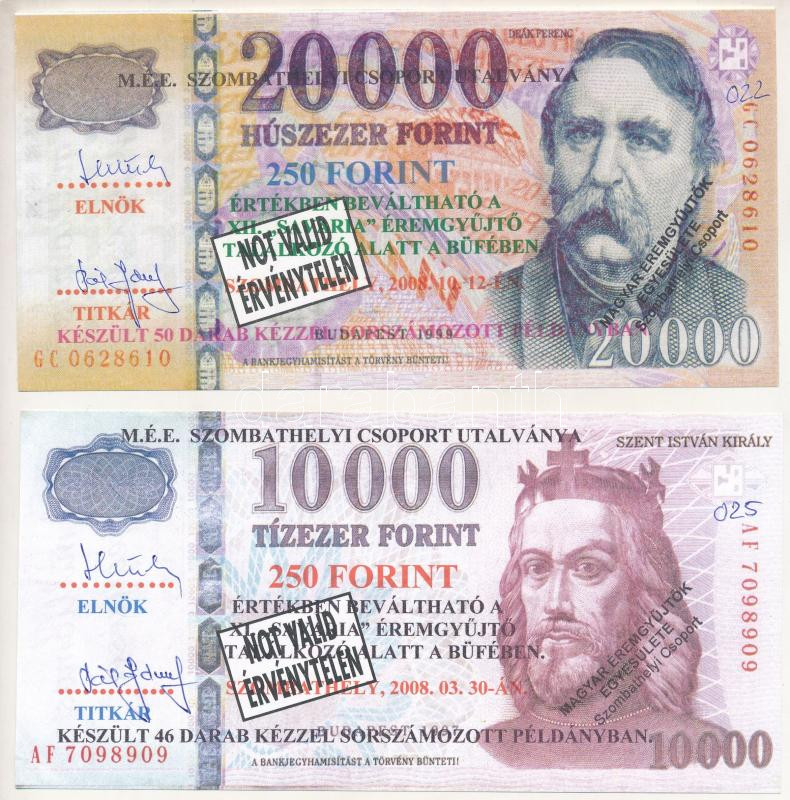 Szombathely 2008. "MÉE Szombathelyi csoport / XI. Savaria Éremgyűjtő Találkozó" 250Ft alkalmi pénz, kézzel sorszámozott + "MÉE Szombathelyi csoport / XII. Savaria Éremgyűjtő Találkozó" 250Ft alkalmi pénz, kézzel sorszámozott T:UNC,AU