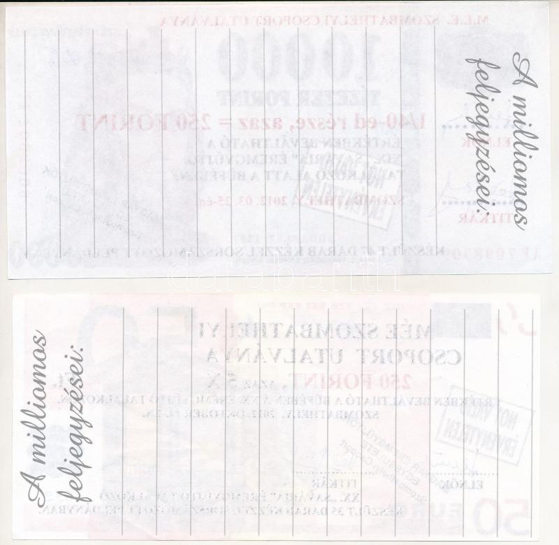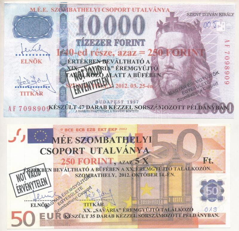 Szombathely 2012. "MÉE Szombathelyi csoport / XIX. Savaria Éremgyűjtő Találkozó" 250Ft alkalmi pénz, kézzel sorszámozott + "MÉE Szombathelyi csoport / XX. Savaria Éremgyűjtő Találkozó" 250Ft alkalmi pénz, kézzel sorszámozott T:UNC,AU
