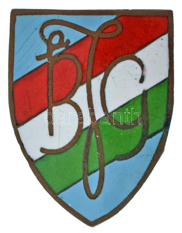 ~1950. "BJG" zománcozott bronz iskolajelvény, sapkajelvény (26x34mm) T:AU