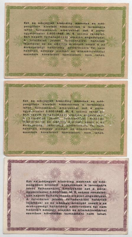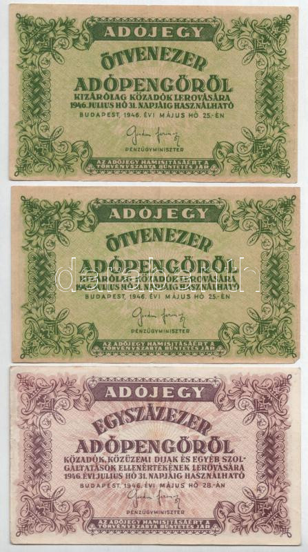 1946. 50.000AP (2x) sorszám nélkül, vízjeles papíron + 100.000AP sorszám és vízjel nélkül, hátoldalán "5600/1946" rendeletszámmal T:F, folt, közte szép papír