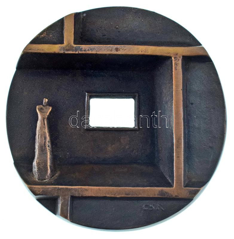Csíkszentmihályi Róbert (1940-2021): 1979. "Otthon Kiállítás 1979" kétoldalas öntött bronz kiállítási érem, eredeti dísztokban (94mm) T:AU