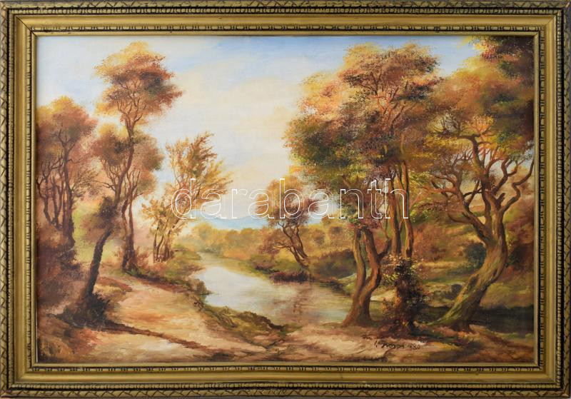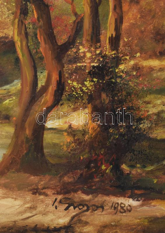 Ioan Grosos (1952), romániai festő: Vízparti táj. Olaj, vászon. Jelezv...