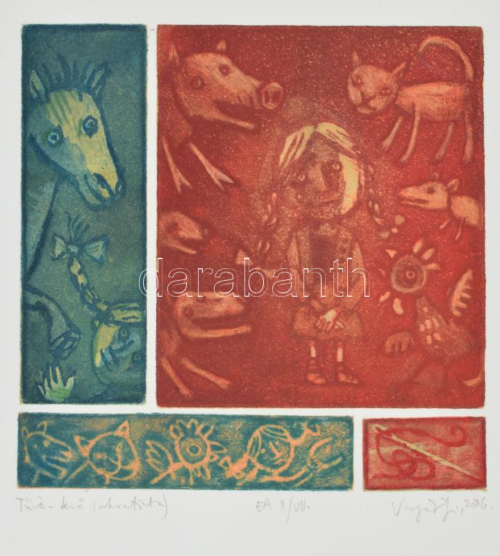 Varga Zsófia (1974-): Tűvé-tevő. Akvatinta, papír, jelzett, művészpéld...