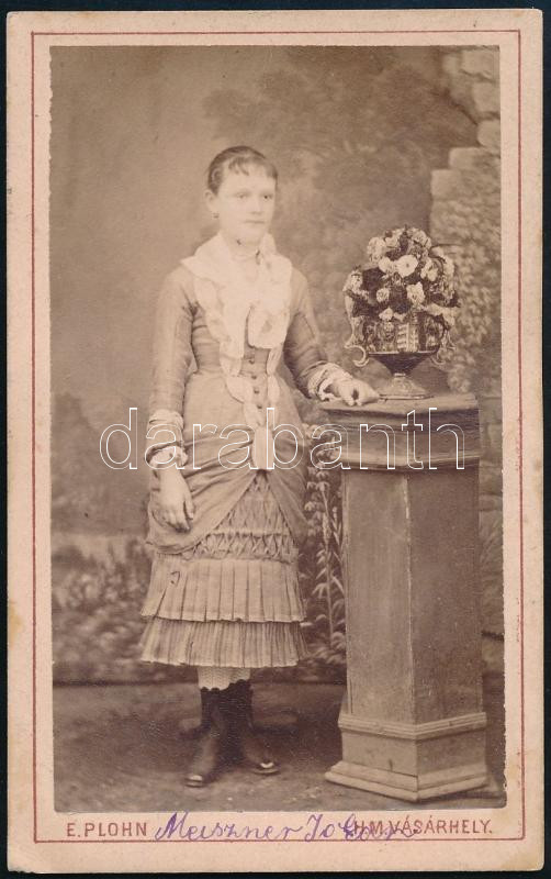 cca 1880 Kislány portréja, keményhátú fotó Plohn Illés hódmezővásárhel...