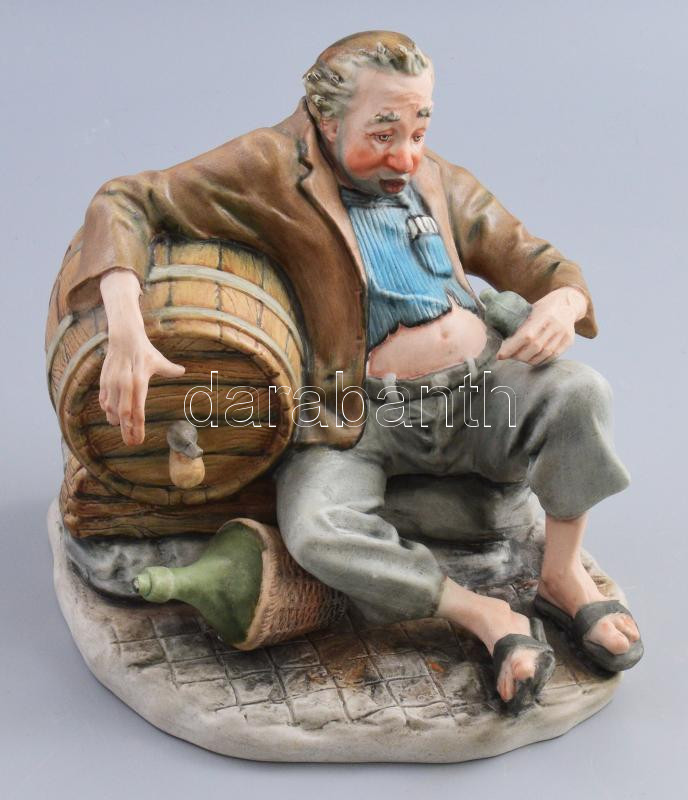 Poema Artistic Porcelain Részeg hordóval Jelzett, kézzel festett, hibátlan, m: 18 cm