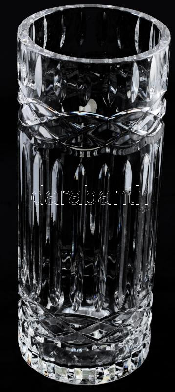 Magyar ólomkristály hengerváza, jelzett, hibátlan, m: 30,5 cm