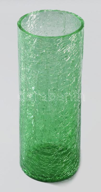 Német zölden színezett krakléüveg hengerváza, kis pattogzással, m: 25,...