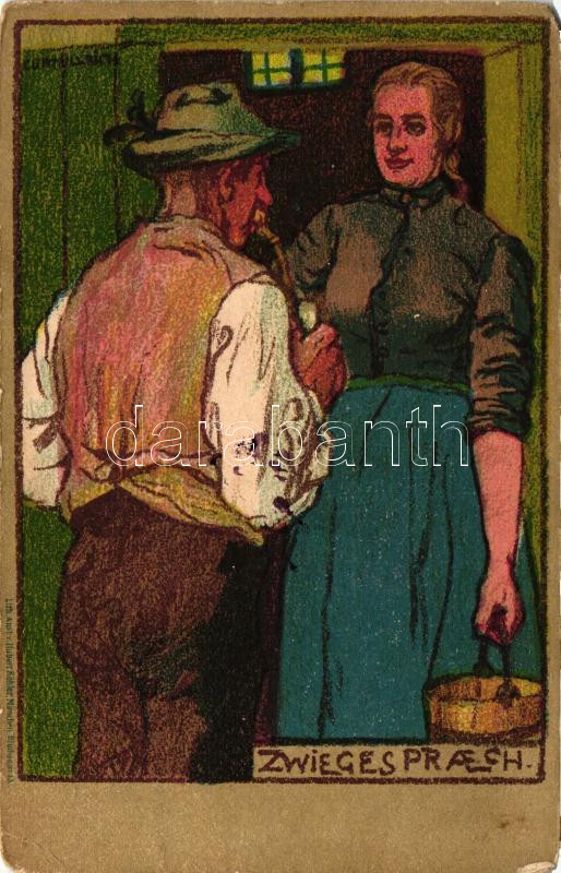 Zwiegespräch / German folklore, couple, Hubert Köhler litho s: Curt Ul...