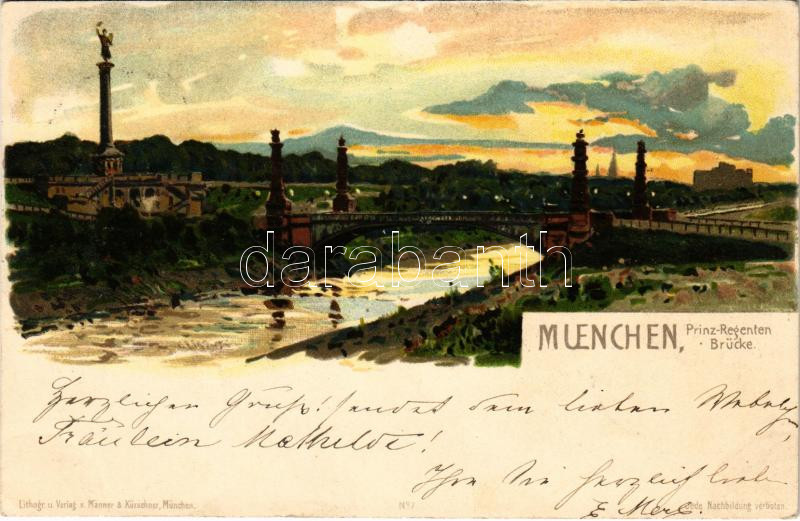 1898 (Vorläufer) München, Munich; Prinz-Regenten Brücke / bridge. lith...
