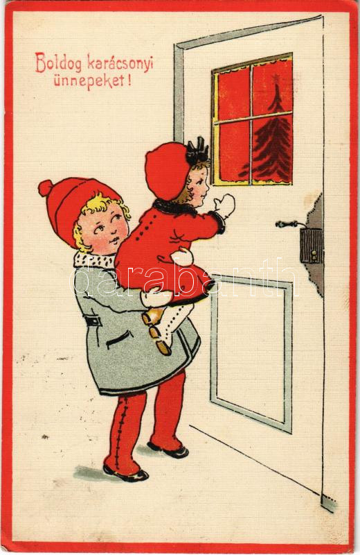 1922 Boldog karácsonyi ünnepeket / Christmas greeting art postcard with children (EK)