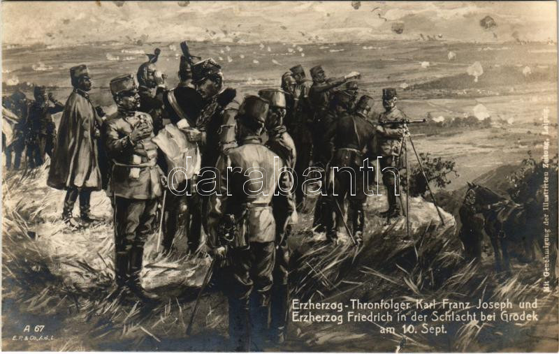 Erzherzog-Thronfolger Karl Franz Joseph und Erzherzog Friedrich in der... https://www.darabanth.com/en/488-Online-auction/488.0/Postcards/Militaria~2500065/Erzherzog-Thronfolger-Karl-Franz-Joseph-und-Erzherzog-Friedrich-in-der-Schlacht-bei-Grodek-am-10-Se~II3150269
