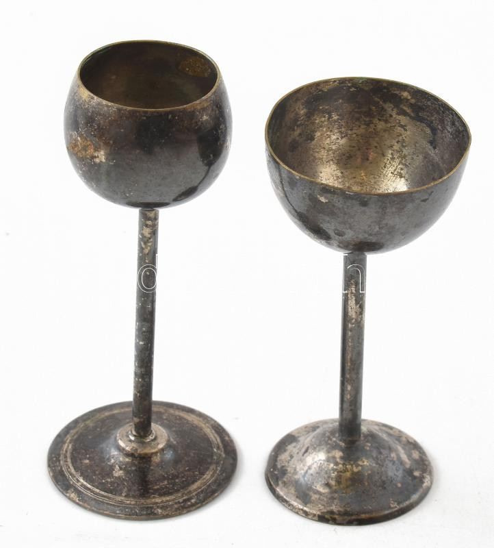 2 darab ezüstözött kehelypohár, kopással, m: 9-10 cm