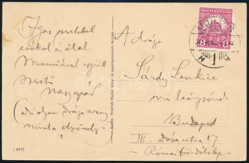 1916 Kézdi-Kovács László (1864-1942) festőművész, műkritikus személyes hangvételű autográf sorai képeslapon Sárdy Lenkének, gyerekkorában elhunyt unokájához