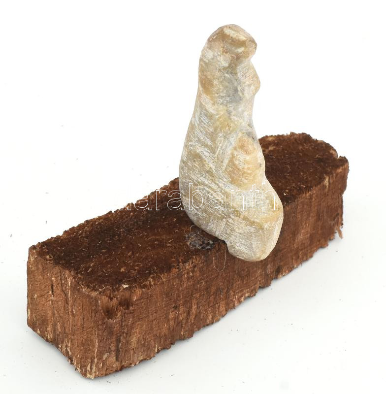 Nagy Sándor (1923-2017): Idol. Faragott kő, jelzés nélkül, fa talapzaton teljes m: 10 cm