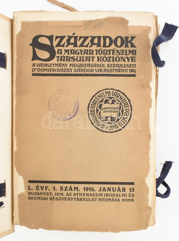 Századok. A Magyar Történelmi Társulat közlönye. Szerk.: Domanovszky S... https://www.darabanth.com/en/489-Online-auction/489.0/Books/Books-History~1000037/Szazadok-A-Magyar-Tortenelmi-Tarsulat-kozlonye-Szerk-Domanovszky-Sandor-1916-evi-L-~II3188761