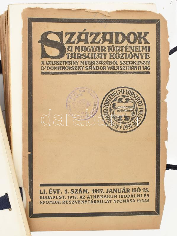 Századok. A Magyar Történelmi Társulat közlönye. Szerk.: Domanovszky S... https://www.darabanth.com/en/489-Online-auction/489.0/Books/Books-History~1000037/Szazadok-A-Magyar-Tortenelmi-Tarsulat-kozlonye-Szerk-Domanovszky-Sandor-1917-evi-LI~II3188779