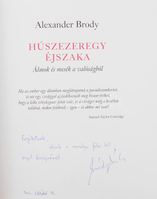 Alexander Brody: Húszezer éjszaka. Álmok és mesék a valóságból. DEDIKÁ...