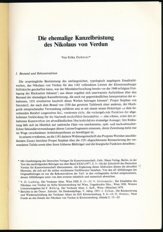 Doberer, Erika: Die ehemalige Kanzelbrüstung des Nikolaus von Verdun. ...