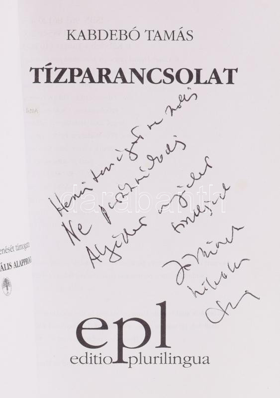 Szépfalusi István: Lássátok, halljátok egymást!; Jobbágy Károly: Háló nélkül; Komza Mária: Idővallató.; Bálint Tibor: Zarándoklás a panaszfalhoz.; Bartis Ferenc: Életre hívó halotti beszéd.; Kopré József: Hagyjatok énekelni.; Tomán László: A bűnös irodalompolitikától az irodalom bűneiig.; Kabdebó Tamás: Tízparancsolat.