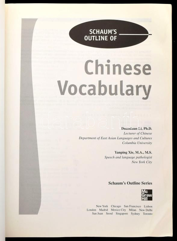 Duanduan Li - Yanping Xie: Chinese Vocabulary. Schaum's Outline S... https://www.darabanth.com/en/489-Online-auction/489.0/Books/Books-Social-sciences~1000025/Duanduan-Li-Yanping-Xie-Chinese-Vocabulary-Schaums-Outline-Series-New-York-2002-McGraw-Hill~II3316203