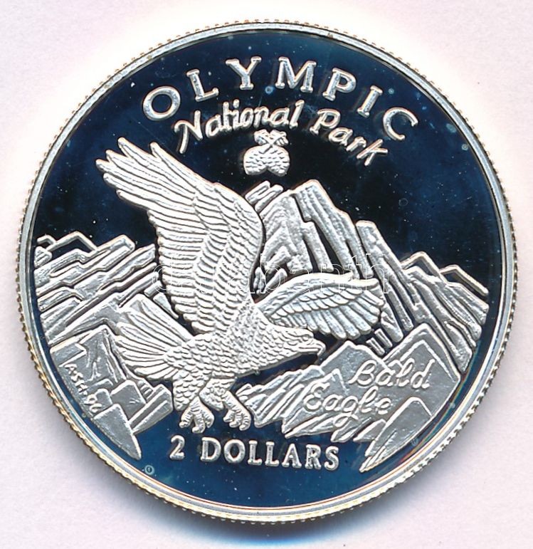 Description: Cook-szigetek 1996. 2$ Ag "Olympic Nemzeti Park" tanúsítvánnyal T:PP