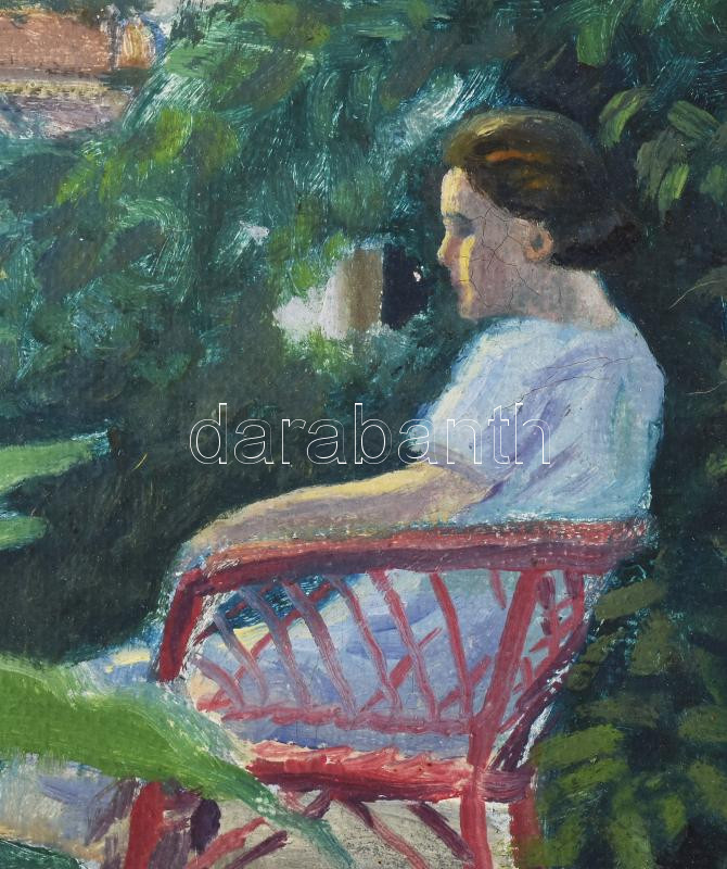 Erdélyi jelzéssel: Hölgy virágok közt (Jakula Kálmánné, Neumayer Mária. Jakula Kálmán, Erédlyi Béla barátjának felesége). 1930-as évek. Olaj, vászon. Jelezve jobbra lent. Dekoratív fakeretben. 45x60 cm / oil on canvas, signed, slightly damaged, framed., 1930-as évek. Olaj, vászon. Jelezve jobbra lent: Jakula Kálmánnak barátsággal, Erdélyi Béla. Jelezve balra lent: 1933. Kissé sérült. Dekoratív, kissé sérült fakeretben. 45x60 cm / oil on canvas, signed, framed.