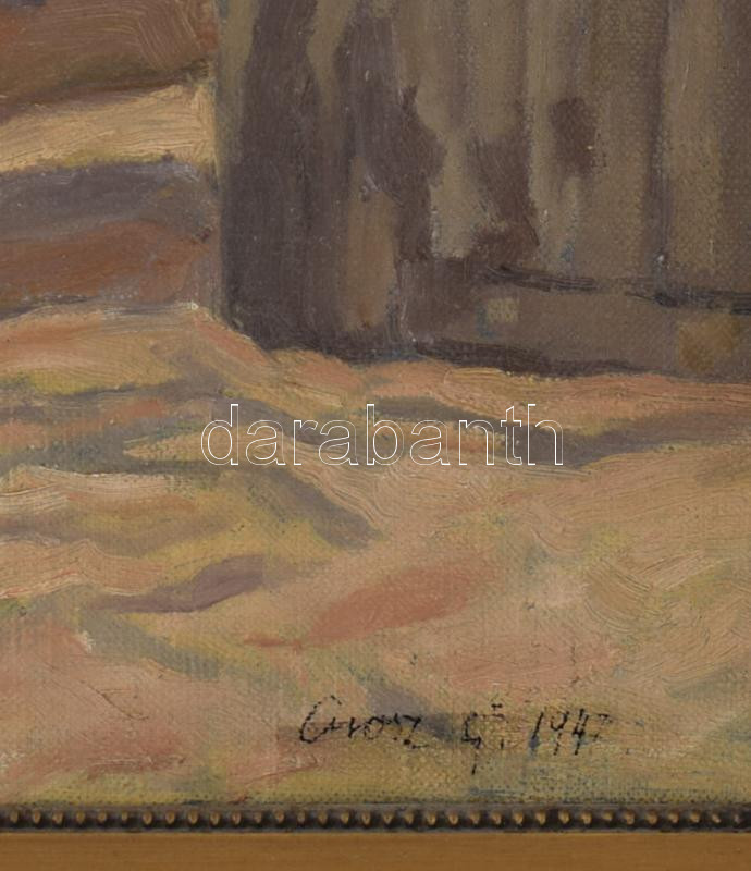 Orosz Gellért (1919-2002): Napfényes utca, 1947. Olaj, vászon, jelezve jobbra lent. Dekoratív, kissé sérült fakeretben, 44×60 cm