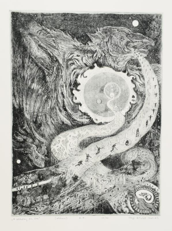 Papp Nikolett (1970-): A sárkány 33. éve. Rézkarc, papír, jelzett. Művészpéldány E.A. VII/XV számozással. 41×31 cm