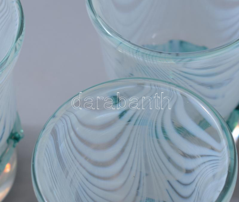 6 db hutaüveg pohár. Anyagában színezett száldíszítéses. hibátlan 10 cm