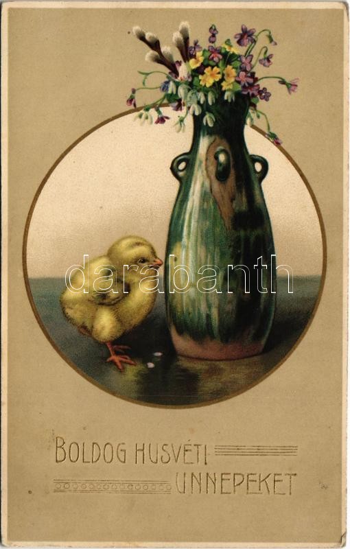 1913 Boldog húsvéti ünnepeket / Easter greeting art postcard with chic...