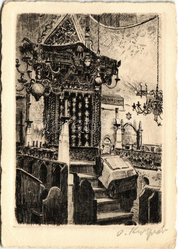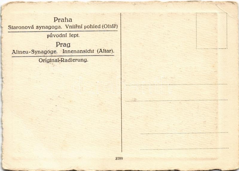 Praha, Prag, Prague; Staronová synagoga. Vnitrí pohled (Oltár) / Altneu-Synagoge. Innenansicht (Altar). Original-Radierung / Old-New Synagogue, interior. Judaica (EK)