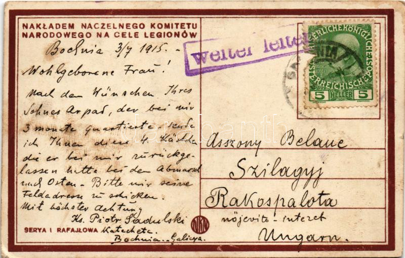 Description: 1915 Jency rosyjscy. Nakladem naczelnego komitetu narodowego na cele legionów / WWI Austro-Hungarian K.u.K. military, Russian POWs (prisoners of war) (fl)
