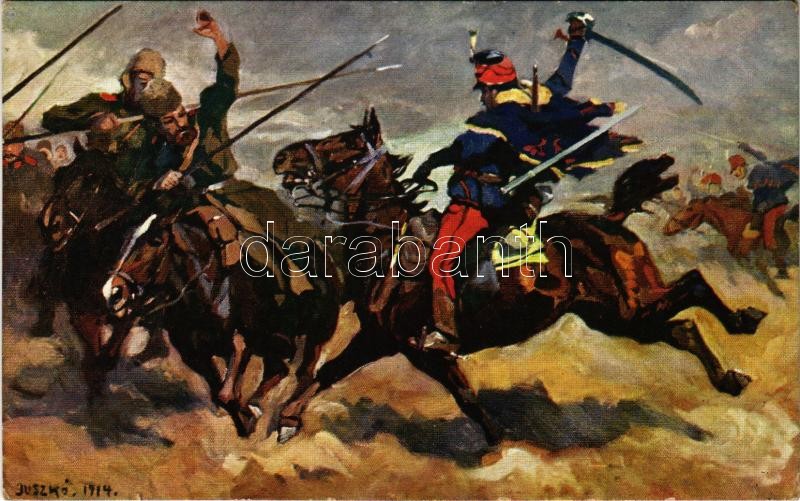 Támadó huszár / Husaren-bravour / WWI Austro-Hungarian K.u.K. military art postcard, hussar attack. Rotophot Budapest Nr. 660. s: Juszkó Béla (EK)