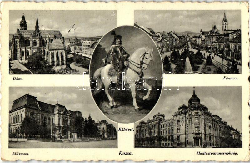 Kassa, Kosice; Fő utca, Rákóczi, Múzeum, Hadtestparancsokság / main street, museum, military headquarters (Rb)