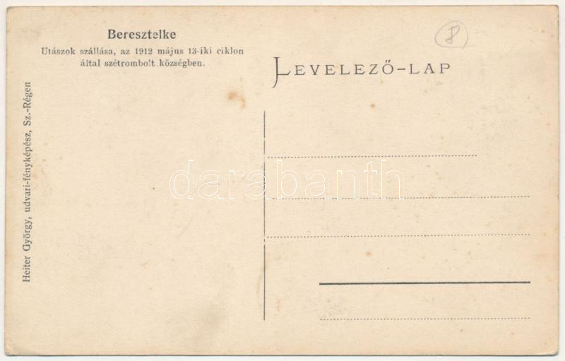 Beresztelke, Bretzdorf, Breaza; Utászok szállása az 1912. május 13-iki... https://www.darabanth.com/en/489-Online-auction/489.0/Postcards/Transylvania~1500006/Beresztelke-Bretzdorf-Breaza-Utaszok-szallasa-az-1912-majus-13-iki-ciklon-altal-szetrombol~II3357094