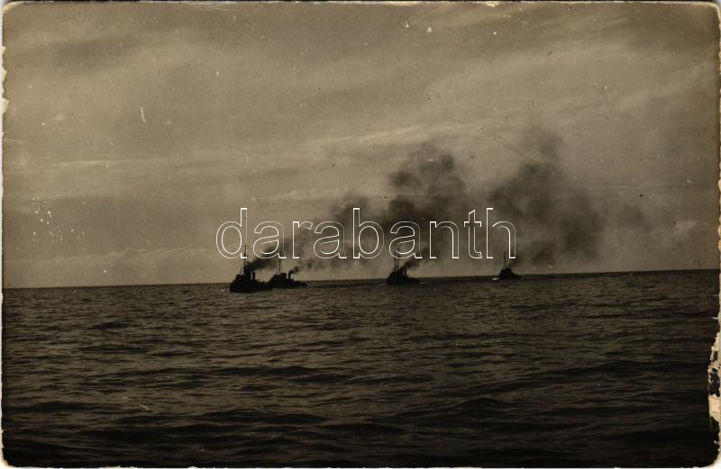 Osztrák-Magyar Haditengerészet Dinara típusú rombolói / K.u.K. Kriegsmarine Zerstörer / WWI Austro-Hungarian Navy Huszár-class destroyers. photo (kis szakadás / small tear)
