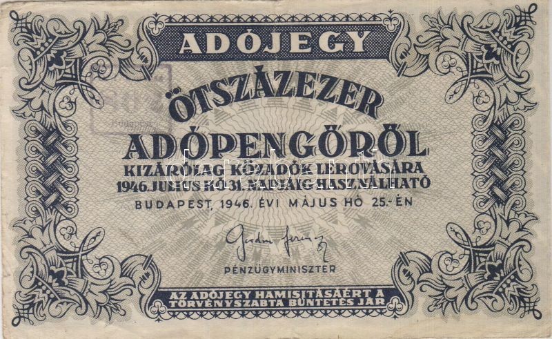 1946. 500.000Adópengő szögletes bélyegzővel T:II/III