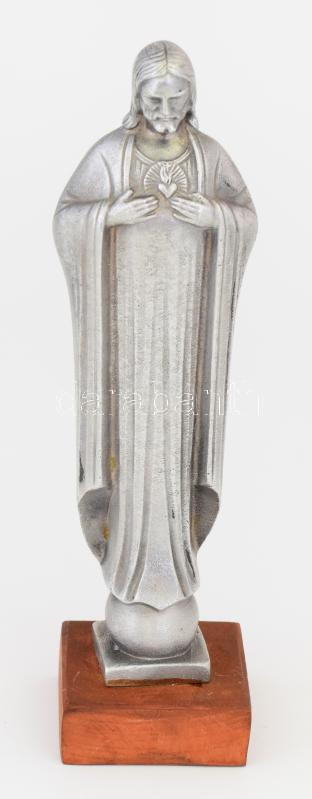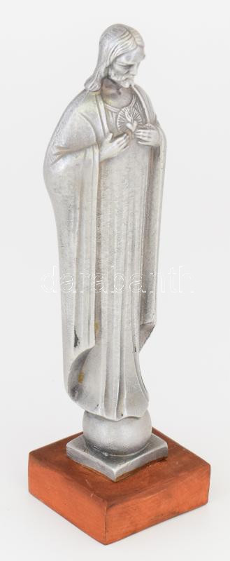 Alumínium Krisztus szobor, fa talpon, m: 23 cm