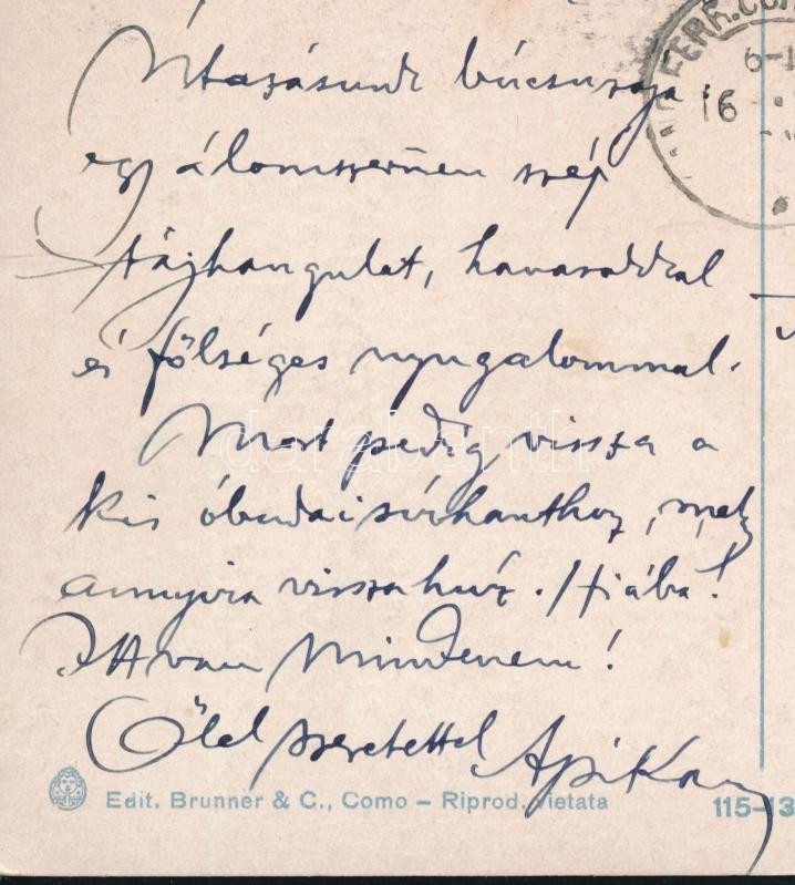 1916 Kézdi-Kovács László (1864-1942) festőművész, műkritikus személyes hangvételű autográf sorai képeslapon
