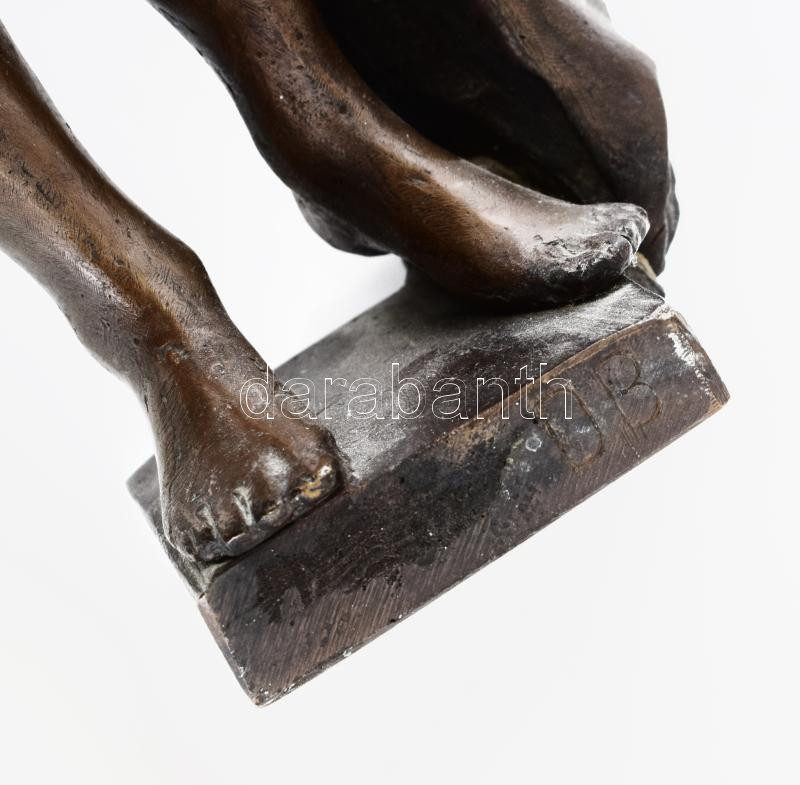 Domonkos Béla (1934-2020) Akt törölközővel. Patinázott bronz, Jelzett....