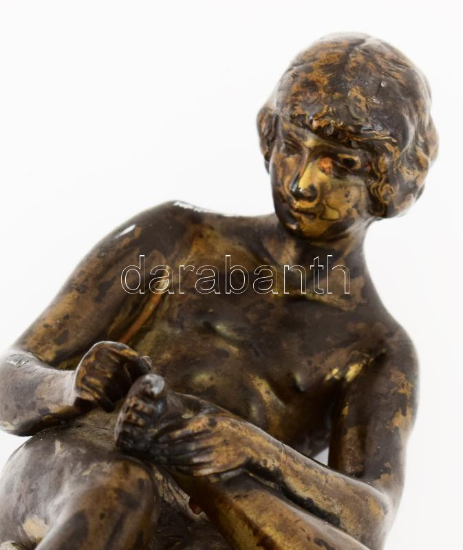 Tüskehúzó fiú. Bronzírozott ón szobor, márvány talapzaton, sérült, m: 17 cm