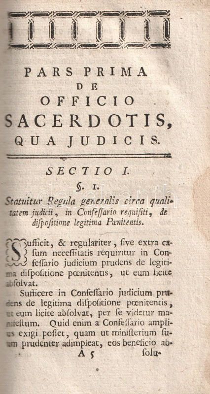 Gyóntatói kézikönyvek alkotta, latin nyelvű teológiai kolligátumunk az egri püspöki nyomdában készült. Kötetünk első, nagy terjedelmű munkája a flamand ferences szerzetes, Thomas du Jardin (1653-1733) műve, zárómunkája pedig a karitászáról, illetve papnevelési reformjairól ismert olasz bíboros érsek, Borromei Szent Károly (1538-1584) gyóntatói kézikönyve. A művek első modern kiadása Kölnben jelent meg először, 1707-ben, illetve 1705-ben. Oldalszámozáson belül néhány fametszetű könyvdísszel, az első mű címlapján régi tulajdonosi bejegyzés.