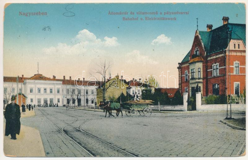 1915 Nagyszeben, Hermannstadt, Sibiu; Állomás tér és villamosmű a pály... https://www.darabanth.com/en/490-Online-auction/490.0/Postcards/Transylvania~2000006/1915-Nagyszeben-Hermannstadt-Sibiu-Allomas-ter-es-villamosmu-a-palyaudvarral-vasutallomas~II3365531