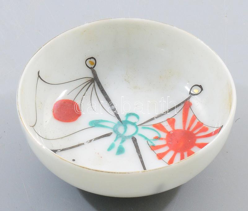 Japán porcelán katonai szakés csésze. cca 1940-1944, gyalogos hadosztály, páros zászló díszítéssel, kis kopással, d: 7 cm