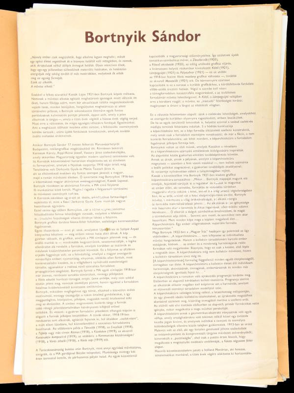 Bortnyik Sándor kiállítása. A kiállítást rendezte és a katalógust összeállította: N. Pénzes Éva, Pogány Ö Gábor. Bp., 1969, Magyar Nemzeti Galéria. Egészoldalas, fekete-fehér képekkel, Bortnyik Sándor (1893-1976) festőművész, grafikus műveinek reprodukcióival illusztrálva. Kiadói papírkötés, jó állapotban. + Bortnyik mappa (4 hiánnyal: 10-13.) Beragasztott verssel.