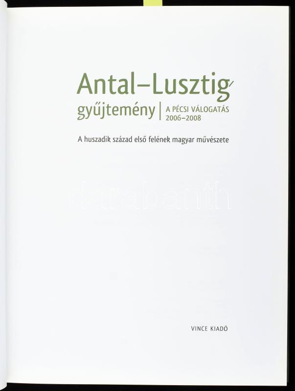 Cseh Szilvia (szerk.): Antal-Lusztig gyűjtemény - A pécsi válogatás 2006-2008. Bp., 2009, Vince. 189+3 p. Színes és fekete-fehér képekkel, többek közt Ferenczy Károly, Vaszary János, Gulácsy Lajos, Tihanyi Lajos, Berény Róbert, Uitz Béla, Aba-Novák Vilmos, Ámos Imre, Anna Margit, Korniss Dezső műveinek reprodukcióival illusztrált. Kiadói kartonált papírkötésben, jó állapotban.