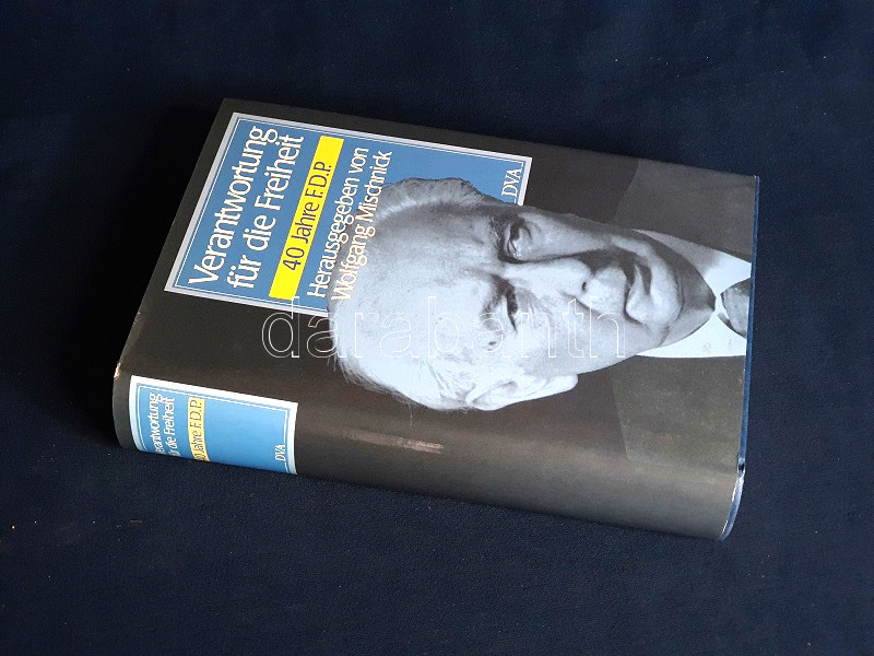 Mischnick, Wolfgang (herausg.): Verantwortung für die Freiheit, 40 Jahre F. D. P. Mit einem Vorwort von Otto Graf Lambsdorf. (Dedikált.) Stuttgart, (1989). Deutsche Verlags-Anstalt (Druck: May & Co., Darmstadt). Egyetlen kiadás. Dedikált: "Mit allen guten Wünschen für István Horváth. 11. 12. 89." Az 1948-ban alapított német szabad demokrata párt, az FDP történetét és politikai krédóját elemző tanulmánykötet. A hagyományosan idősebb felső középosztálybeli és középosztálybeli választókat képviselő, a szabadpiaci elveket a kis méretű állam jóléti intézkedéseivel ötvöző liberális párt 10% körüli eredményeket ért el története során. A párt döntően a nyugati tartományokban, Baden-Württembergben, Rajna-Pfalzban, Hessenben, Schleswig-Holsteinben erős, bürokrácia- és adócsökkentő elvei fenntartása mellett szabad vegyértékként egyaránt koalícióképes volt a kereszténydemokratákkal és a szociáldemokratákkal, a békebeli Németország két hagyományos politikai erejével -- mindent összevéve piacpárti, jobbközép, konzervatív liberális pártnak mondható (melynek nincs magyar megfelelője). A párt középen álló pozíciójáról árulkodik a tény, hogy tanulmánykötetünk szerzői között éppúgy megtaláljuk Hans-Johann Vogel politikust, az SPD erős emberét, mint Helmut Kohl CDU-vezetőt és szövetségi kancellárt. Prov.: Horváth István (sz. 1943) közgazdász, külkereskedő, bonni nagykövet 1984-1991 között. Kiadói egészvászon kötésben, színes, illusztrált kiadói védőborítóban. Jó példány.