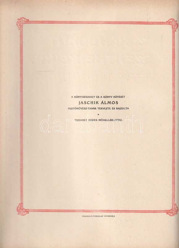 Budapest, (1933). Franklin-Társulat (ny.) 1 t. (hártyapapírral védett színes címkép) + XLVIII + 503 + [1] p. + 16 t. (színes). Egyetlen kiadás.